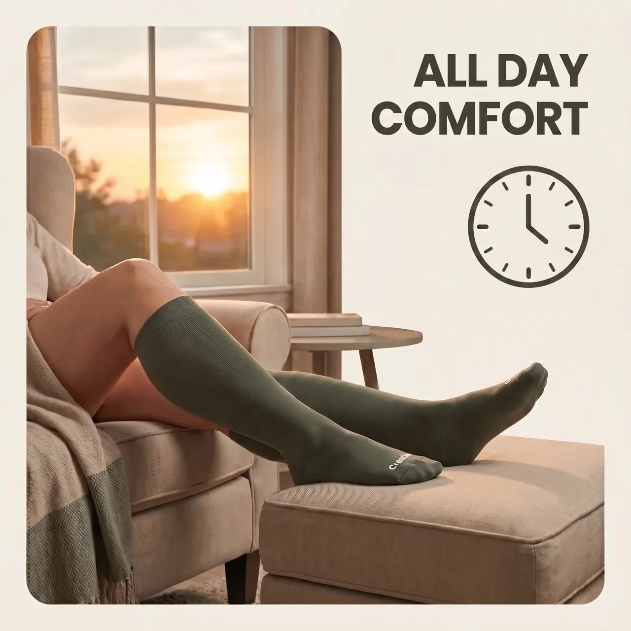 Synthetic compression socks trap heat against your skin - which is exactly why most people rip them off by noon. Crestiq bamboo viscose wicks moisture 60% more effectively than synthetic fibers and naturally regulates temperature throughout the day, so you can wear them through a full day of gardening, errands, or travel without your legs feeling like they're wrapped in plastic.